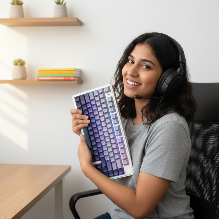 I love how compact the 75% layout is—it frees up desk space without sacrificing functionality. The pre-lubed linear switches feel incredible, and the metal knob adds a premium touch. My productivity has never been higher!